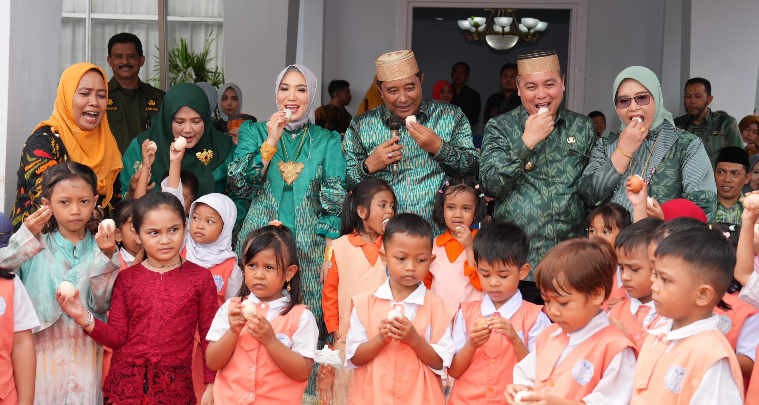 REPUBLIKNEWS.CO.ID, WAJO — Sebanyak 10 ribu balita dan ibu hamil di Sulsel melakukan makan telur serentak, Senin (22/04/2024). Dalam kesempatan ini, Pj Gubernur Sulsel Bahtiar Baharuddin didampingi Pj Ketua TP PKK Sulsel Sofha Marwah Bahtiar, mencanangkan Gerakan Peduli Stunting (Gadis) 2024 serta Kampanye Makan Telur, di halaman Rujab Wajo, Jalan Veteran, Sengkang, Senin (22/04/2024).