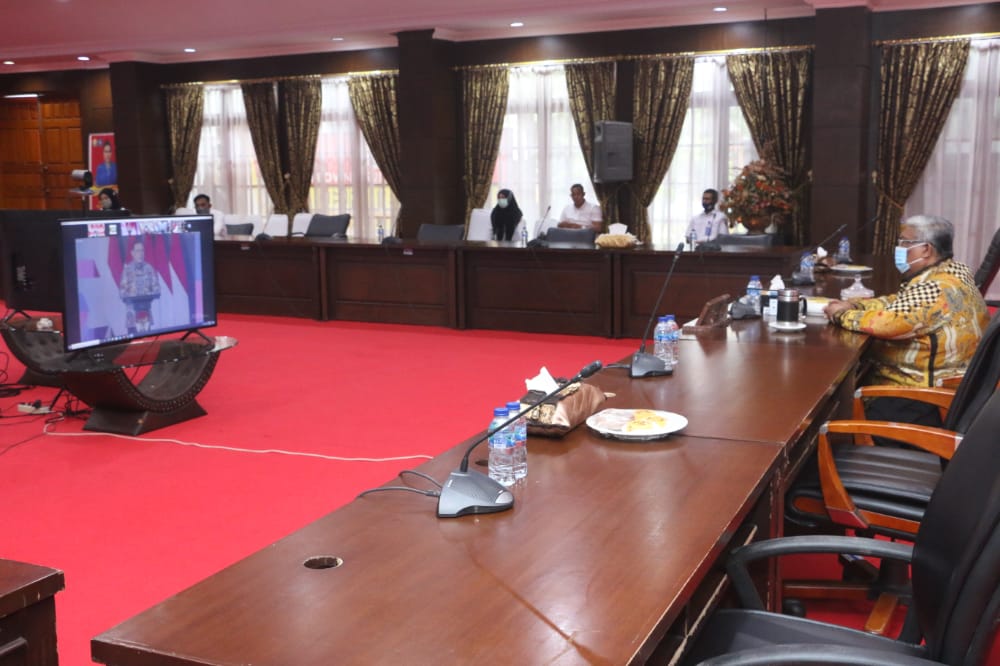 Gubernur Sultra Ali Mazi saat mengikuti peringatan Harkordia 2020 secara virtual. Foto: Kominfo Sultra