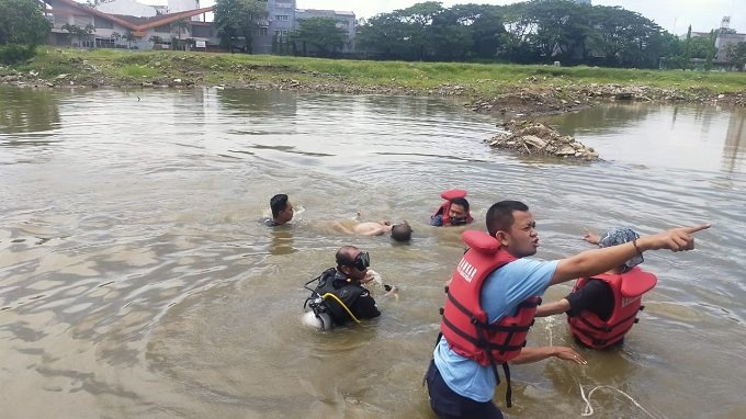 Proses evakuasi korban tenggelam di Kubangan Eks Stadion Mattoanging, Jumat (03/06/2022). (Istimewa)