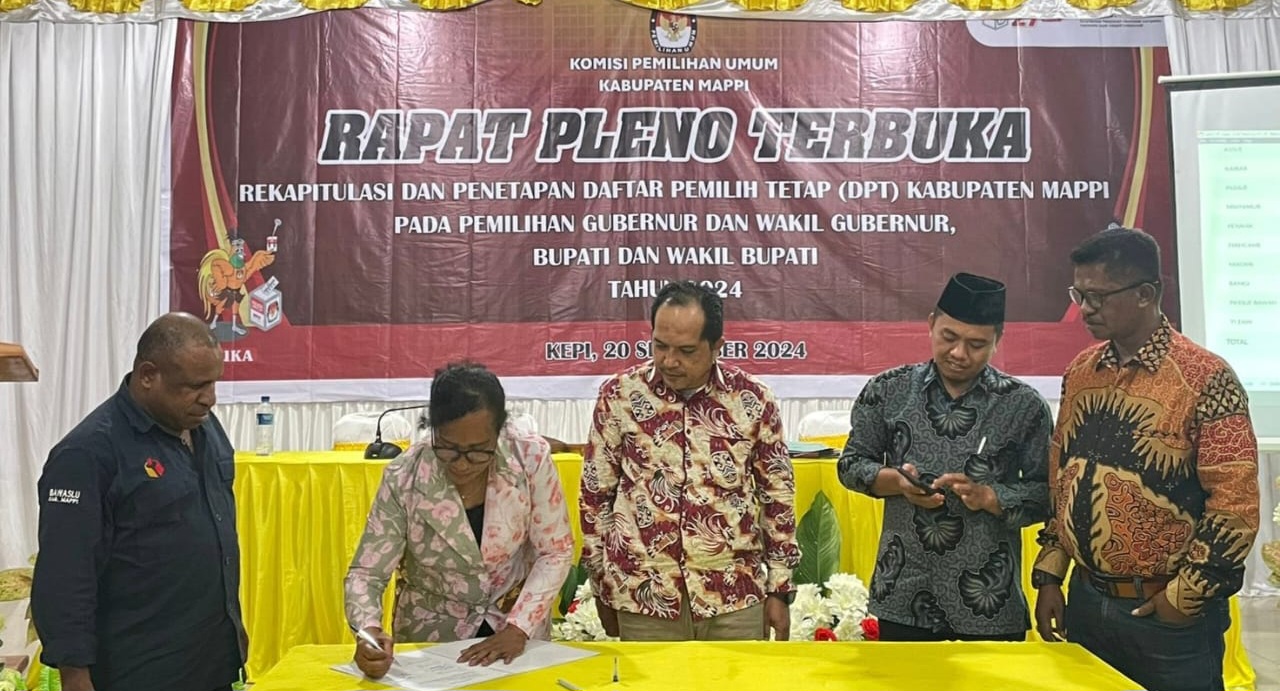 REPUBLIKNEWS.CO.ID, MAPPI – Komisi Pemilihan Umum (KPU) Kabupaten Mappi menetapkan Daftar Pemilih Tetap (DPT) berjumlah 82.154 pemilih pada Pilkada Bupati dan Wakil Mappi 2024 dalam Rapat Pleno Terbuka Penetapan DPT bertempat di aula Dinas Pendidikan Kabupaten Mappi di Kepi, Jumat (20/09/2024).