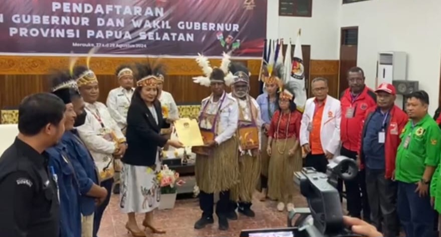 Ketua KPU Papua Selatan, Theresia menjelaskan, kedua bakal pasangan calon (Paslon) Gubernur dan Wakil Gubernur Papua Selatan 2024 telah melakukan pendaftaran oleh masing-masing partai politik pengusung. KPU Papua Selatan telah melakukan penelitian atau pemeriksaan kelengkapan dokumen pemenuhan yang harus dipenuhi oleh bakal pasangan calon baik dokumen syarat calon maupun syarat pencalonan.