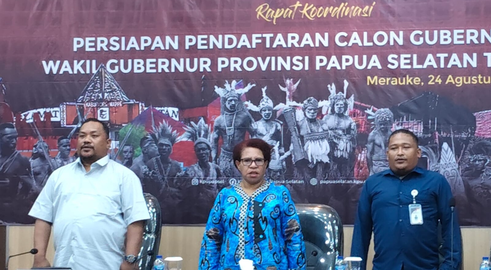 “Bakal calon yang dapat dipilih menjadi Gubernur dan Wakil Gubernur Papua Selatan adalah warga negara Indonesia, orang asli Papua (OAP), bertakwa kepada Tuhan Yang Maha Esa, pendidikan minimal sarjana atau setara, usia minimal 30 tahun,” sebut Helda Ambay dalam rapat koordinasi.