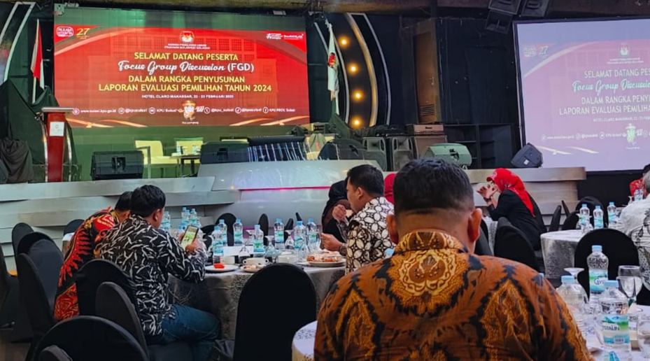 REPUBLIKNEWS.CO.ID, MAKASSAR – Komisi Pemilihan Umum (KPU) Provinsi Sulawesi Selatan menggelar Focus Group Discussion (FGD) di Hotel Claro, Jalan AP Pettarani, Makassar, Sabtu (22/2/2025). Agendanya dalam rangka penyusunan laporan evaluasi Pemilu 2024.