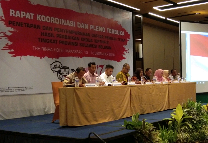 Rapat pleno terbuka rekapitulasi dan penetapan Daftar Pemilih Tetap Hasil Perbaikan Kedua (DPTHP-2) dimulai pada pukul 11:30 Wita, yang bertempat di Hotel Four Points by Sheraton, Jl. Andi Jemma (landak baru) Makassar, Rabu (12/12/2018).
