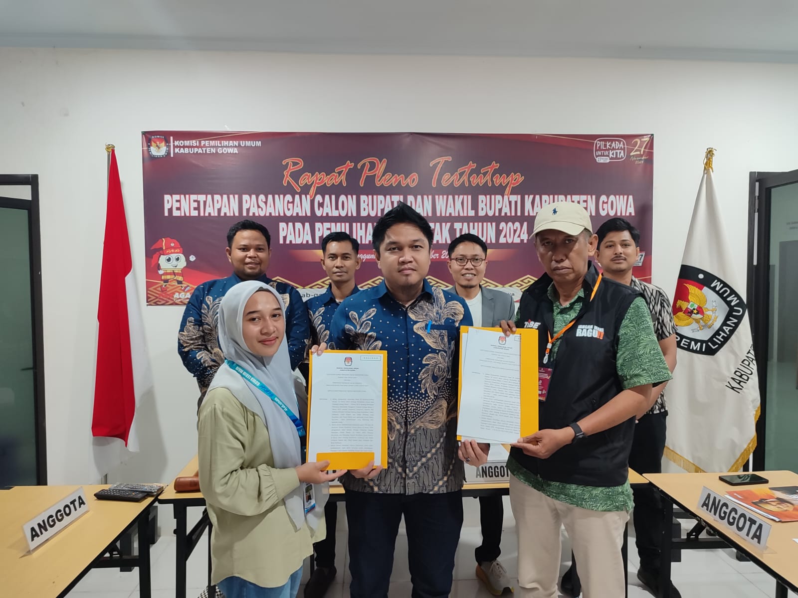 Hal ini berdasarkan hasil Rapat Pleno Tertutup dengan agenda Penetapan Pasangan Calon Bupati dan Wakil Bupati Kabupaten Gowa pada Pilkada Serentak 2024.