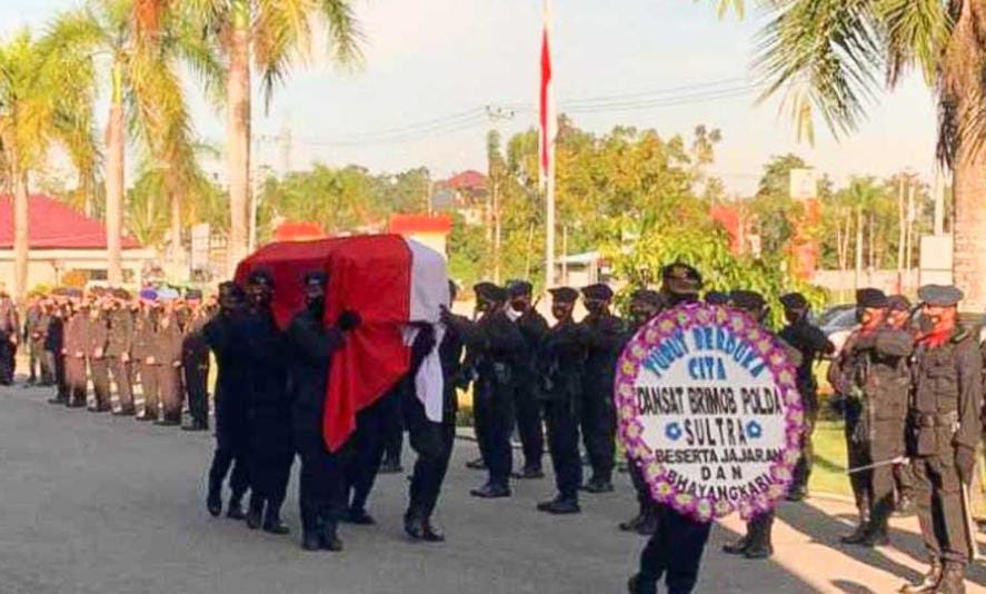 REPUBLIKNEWS.CO.ID, KENDARI — Upacara pelepasan dan pengantaran jenazah Ipda Imam Agus Husein di Markas Brimob Polda Sultra dipimpin langsung Kapolda Sulawesi Tenggara (Sultra) Irjen Pol Teguh Pristiwanto telah dilaksanakan, Selasa (12/04/2022).