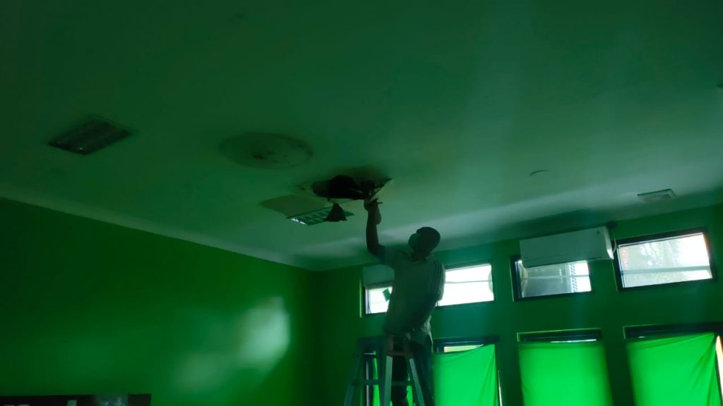 “Jadi kita memeriksa sumbernya dulu dari mana asal kebocoran sehingga kalo kita lansung tutup takutnya plafonnya kembali rusak,” kuncinya.