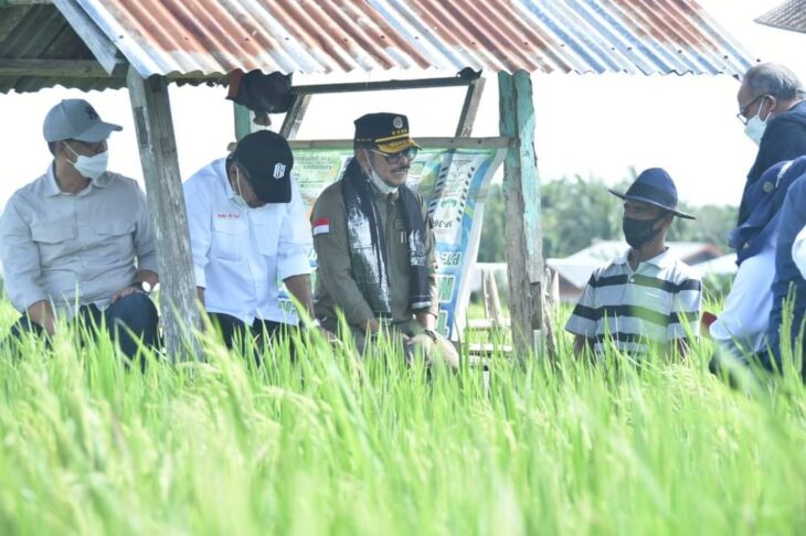 Dalam agenda kunjungan kerjanya, SYL meninjau program IP400 dalam rangka swasembada pangan di hamparan sawah Desa Bialo, Kecamatan Gantarang.