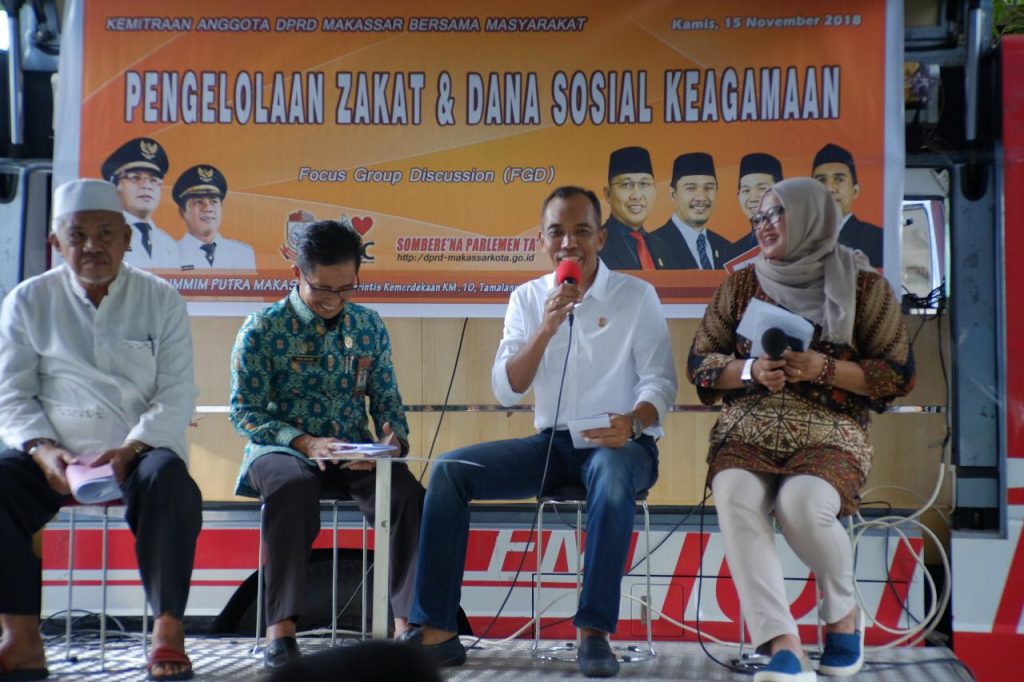 Dalam kegiatan FGD tersebut, menghadirkan narasumber dari Kepala Kantor Kemenag Kota Makassar, Muh Nur Halik, dan juga Sekretaris Pansus Pengelolaan Zakat, Kamaruddin Olle.