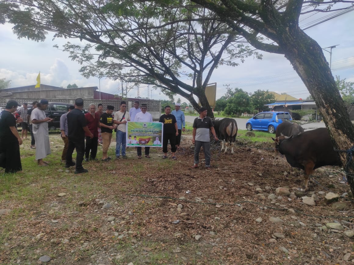 Saat penyembelihan hewan kurban dari Abang Fauzi, hadir mendampingi Kepala Dinas Pertanian Kabupaten Luwu Utara Rusdy Rasyd, Angota DPRD Kabupaten Luwu Utara Fraksi Golkar Husein.