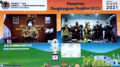Penyerahan penghargaan ini dilakukan dalam acara penutupan Festival Iklim Tahun 2021, secara virtual melalui video conference diikuti langsung oleh Bupati Sinjai Andi Seto Asapa dari Makassar.