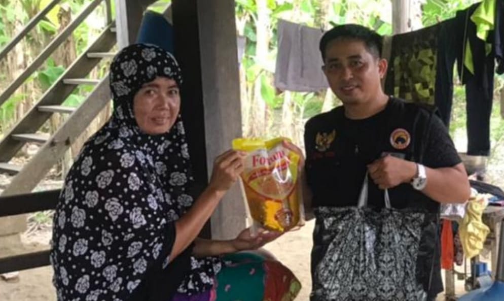 Paket sembako yang berisi tepung terigu, susu kaleng, gula pasir, biskuit hatari dan Minyak goreng (Migor) 2 liter tersebut diberikan kepada warga kurang mampu dan juga lansia.