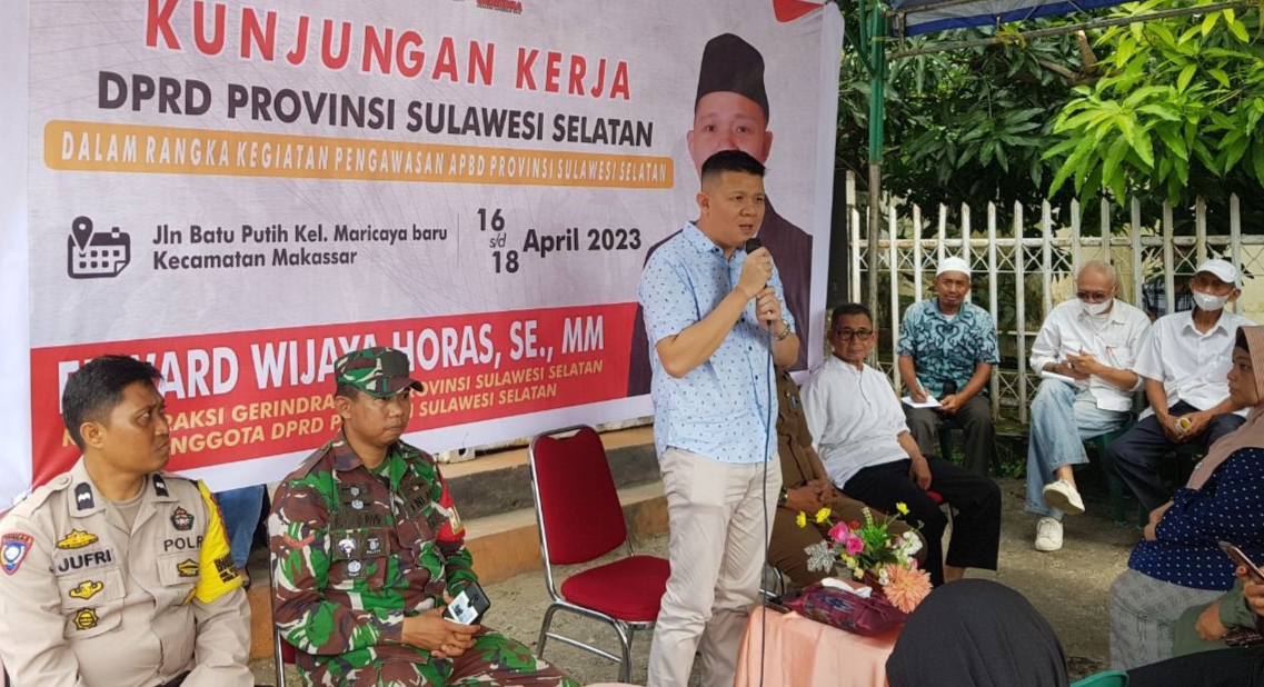 REPUBLIKNEWS.CO.ID, MAKASSAR – Anggota DPRD Provinsi Sulawesi Selatan, Edward Wijaya Horas menggelar kunjungan kerja dalam rangka kegiatan pengawasan penyelenggaraan APBD Provinsi Sulawesi Selatan, Minggu (16/4/2023). Bertempat di Jalan Batu Putih, Kelurahan Maricaya Baru, Kecamatan Makassar, Kota Makassar.