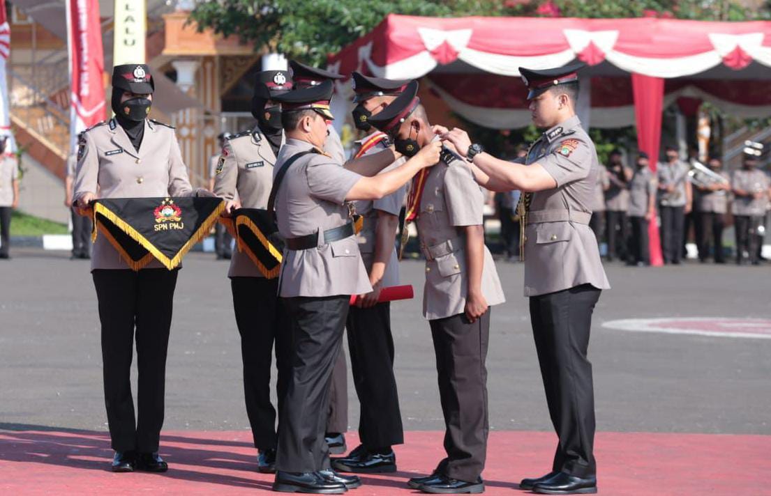 “Melalui upacara penutupan pendidikan dan pelantikan hari ini, dan pada diri saudara telah melekat tugas, kewajiban dan tanggung jawab sebagai bhayangkara negara yang bertugas untuk memberikan perlindungan, pengayoman, dan pelayanan kepada masyarakat, serta menegakkan hukum yang adil, guna memelihara keamanan dan ketertiban masyarakat. amanah ini harus saudara selalu ingat, junjung tinggi dan laksanakan dengan sepenuh hati, penuh kebanggaan, kehormatan dan niatkan untuk selalu berbuat yang terbaik,” terangnya.