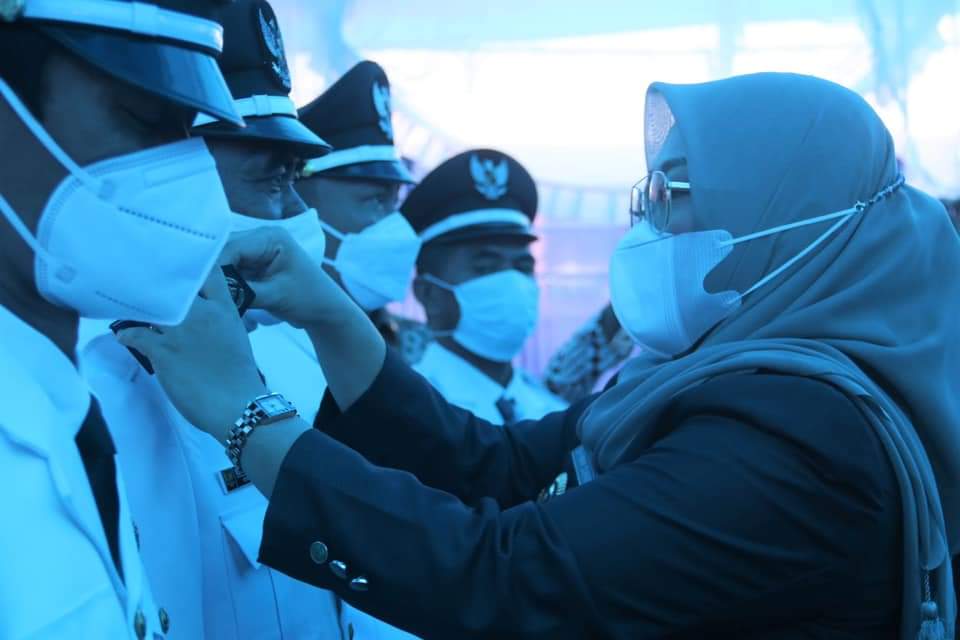 Usai menyematkan Lencana Tanda Jabatan kepada Kelima Kepala Desa, Bupati Mamuju Sitti Sutinah Suhardi membawakan sambutan yang dibuka dengan amanah untuk melupakan perbedaan-perbedaan saat kontestasi Pilkades lalu.
