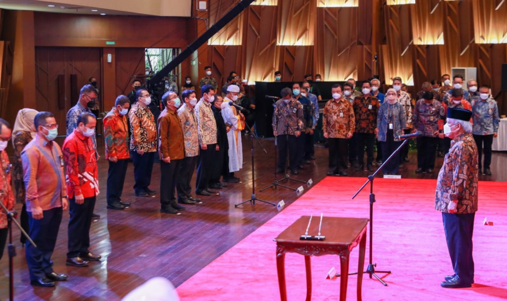 REPUBLIKNEWS.CO.ID, JAKARTA — Menteri Pekerjaan Umum dan Perumahan Rakyat (PUPR) Basuki Hadimuljono melantik 1 (satu) Pejabat Tinggi Pratama setara Pejabat Eselon II dan 101 (seratus satu) Pejabat Administrator di Lingkungan Kementerian PUPR, di Auditorium Kementerian PUPR, Jumat (04/03/2022). Pelantikan dilakukan untuk mengukuhkan dan menggantikan beberapa pejabat yang telah memasuki masa purna bakti dan dalam rangka reorganisasi.