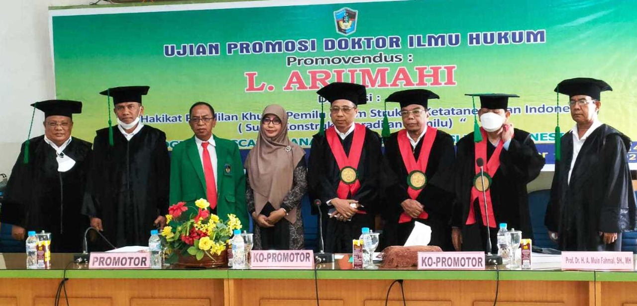Pria yang dilahirkan di Wanci Sulawesi Tenggara 12 Desember 1963 itu lulus dengan Yudisium “sangat memuaskan” setelah mempertahankan disertasinya berjudul “Hakikat Peradilan Khusus Pemilu dalam Struktur Ketatanegaraan Indonesia (Suatu Konstruksi Peradilan Pemilu)”.