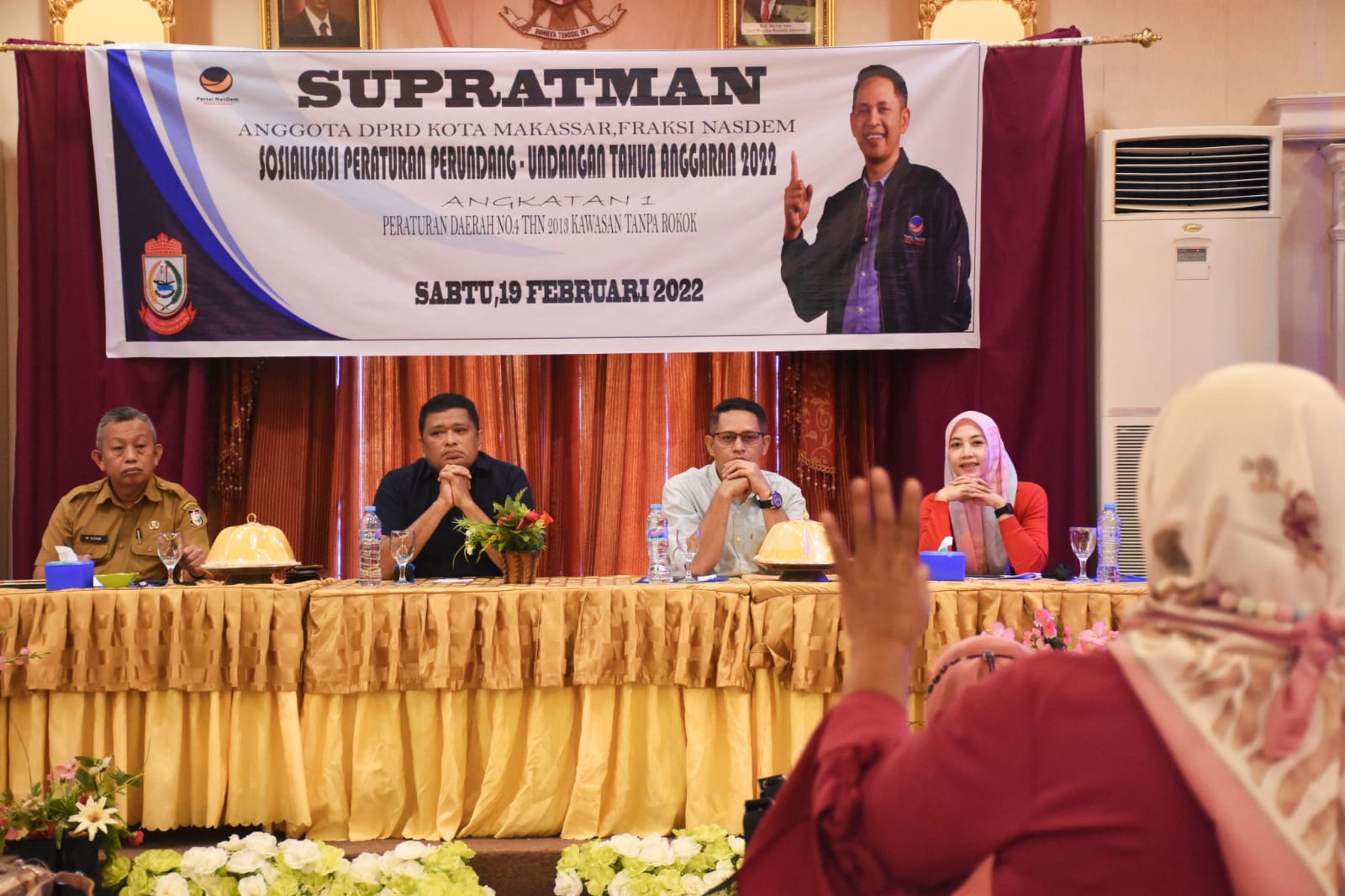 REPUBLIKNEWS.CO.ID, MAKASSAR – Anggota DPRD Kota Makassar, Supratman menggelar sosialisasi peraturan daerah (Perda) nomor 4 tahun 2013 tentang Kawasan Tanpa Rokok (KTR), di Hotel Grand Town, Sabtu (19/2/2022). Kata dia, regulasi ini tidak mengatur persoalan larangan merokok tetap ada kawasan tertentu yang memang dilarang. Misalnya, sekolah, fasilitas umum dan gedung pemerintahan.