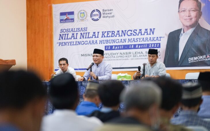 REPUBLIKNEWS.CO.ID, KEPULAUAN SELAYAR — Anggota DPRD Kepulauan Selayar Miswar Wahyudhy Nasir Leha, menggelar Sosialosasi Nilai-Nilai Kebangsaan kepada ratusan warga dari Kecamatan Bontosikuyu dan Bontoharu, di Gedung Pertemuan Semarang Baloiya Beach, Sabtu (16/04/2022).