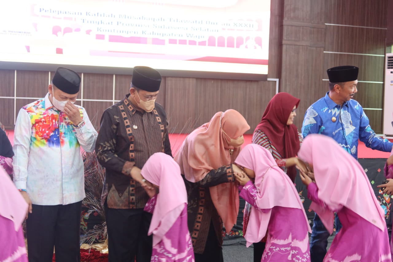 “Alhamdulillah kita bersyukur atas sinergi dari panitia dan ofisial serta dukungan dari Bapak Bupati dan Bapak Wakil Bupati sehingga hari ini bisa dilepas untuk berlomba di MTQ tingkat Provinsi Sulsel,” ucapnya.