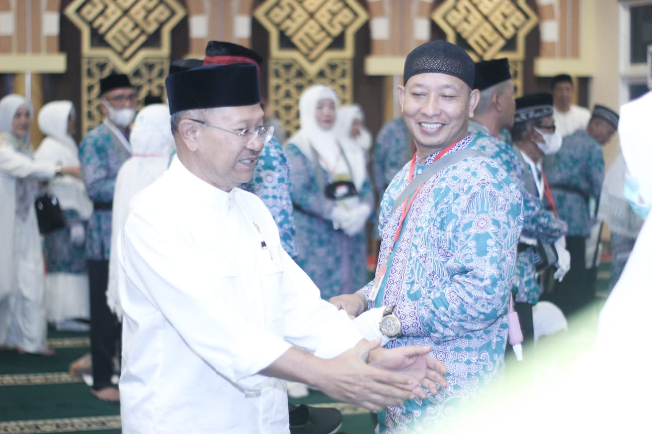 “Selamat menunaikan ibadah haji. Utamakan kebersamaan, jaga kesehatan insya Allah menyandang predikat haji mabrur,” ujarnya.