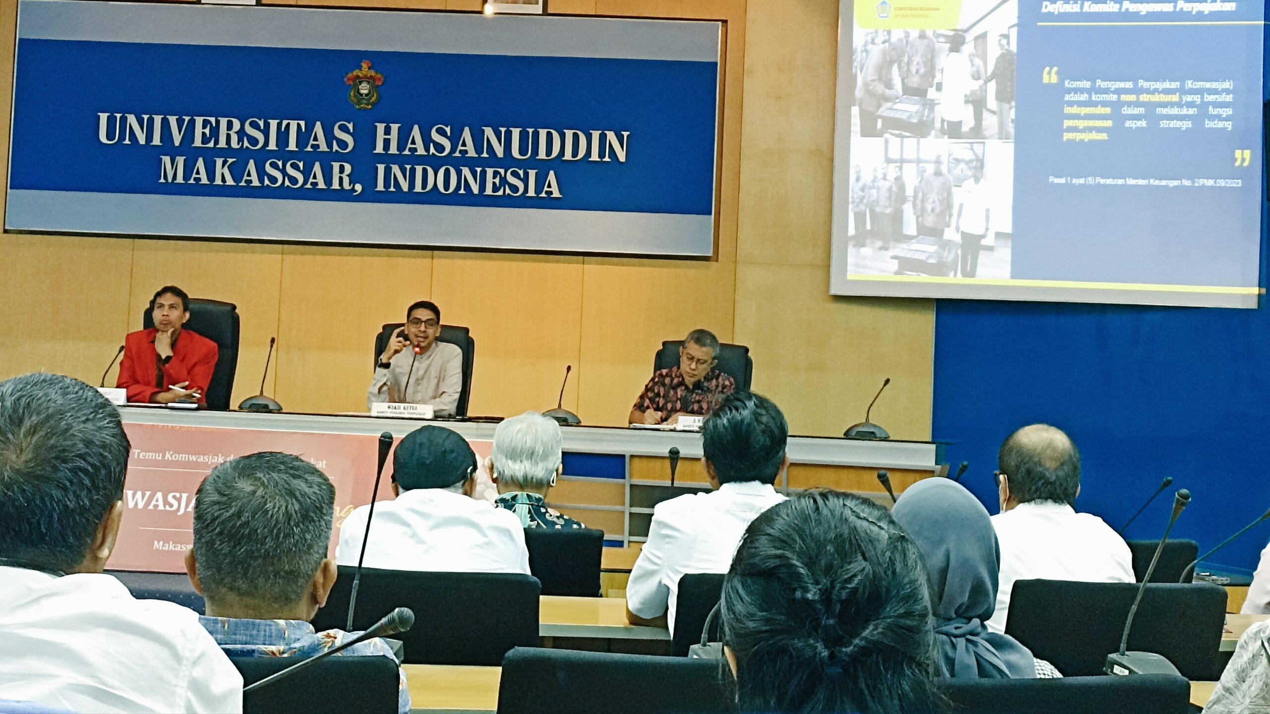 REPUBLIKNEWS.CO.ID, MAKASSAR — Komite Pengawas Perpajakan (Komwasjak) melakukan pertemuan dengan sejumlah kelompok masyarakat sipil yang terdiri dari akademisi, pelaku usaha, hingga pelaku wajib pajak lainnya melalui kegiatan “Komwasjak Mendengar” yang berlangsung di Ruang Senat Rektor Universitas Hasanuddin (Unhas).