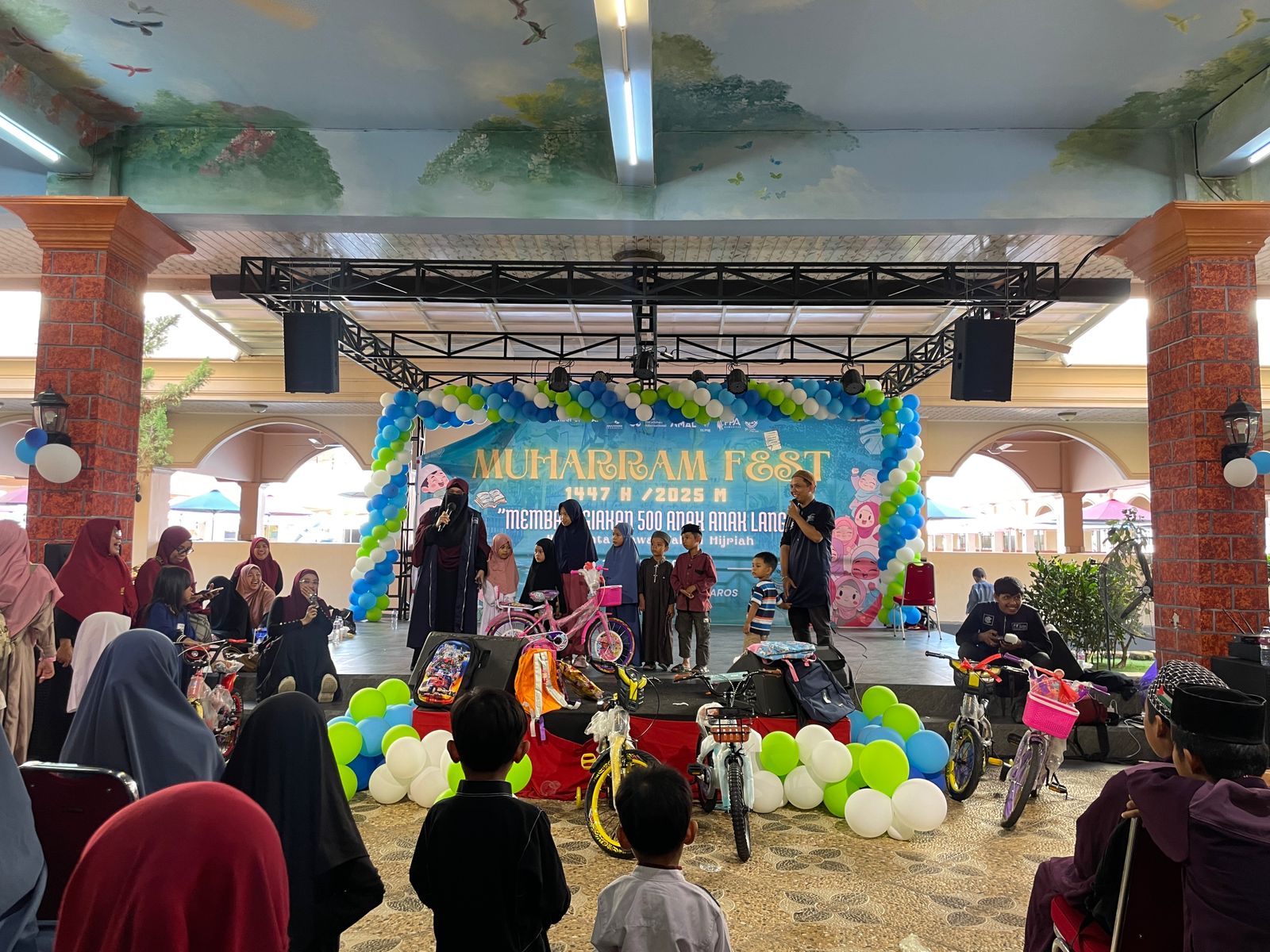 Muharram Fest selain diisi dengan hiburan, permainan, dan tausiyah penguatan bagi anak yatim; ratusan anak ini juga mendapat santunan dari donatur yang dikelola oleh PPA dan YAI.
