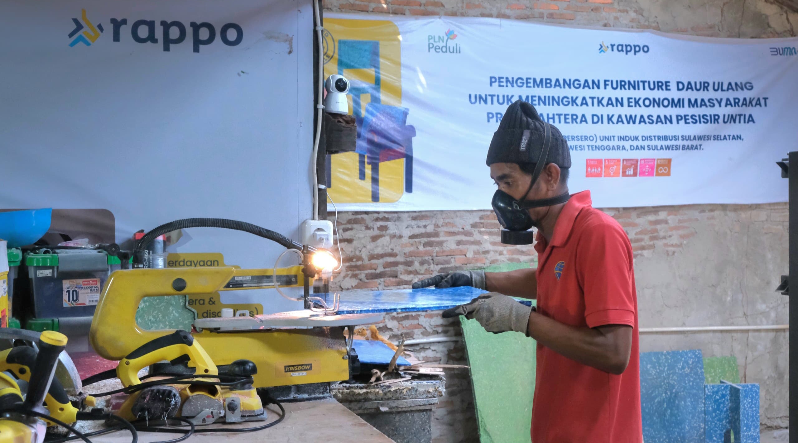 Kali ini, PLN UID Sulselrabar bekerja sama dengan Rappo Indonesia, sebuah usaha sosial yang bergerak di bidang pengelolaan sampah, untuk mengurangi sampah plastik dan mengolahnya menjadi barang bernilai guna.
