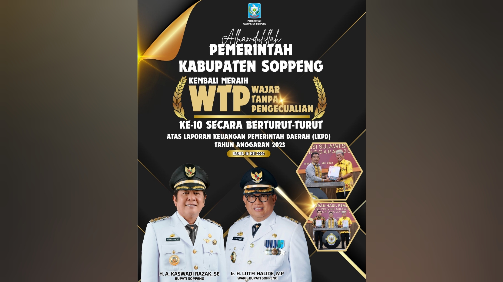 Lanjutnya dengan mengucap kata Alhamdulillah atas WTP kembali diraih Kabupaten Soppeng yang ke-10 dan tentu merupakan suatu prestasi yang patut dibanggakan.