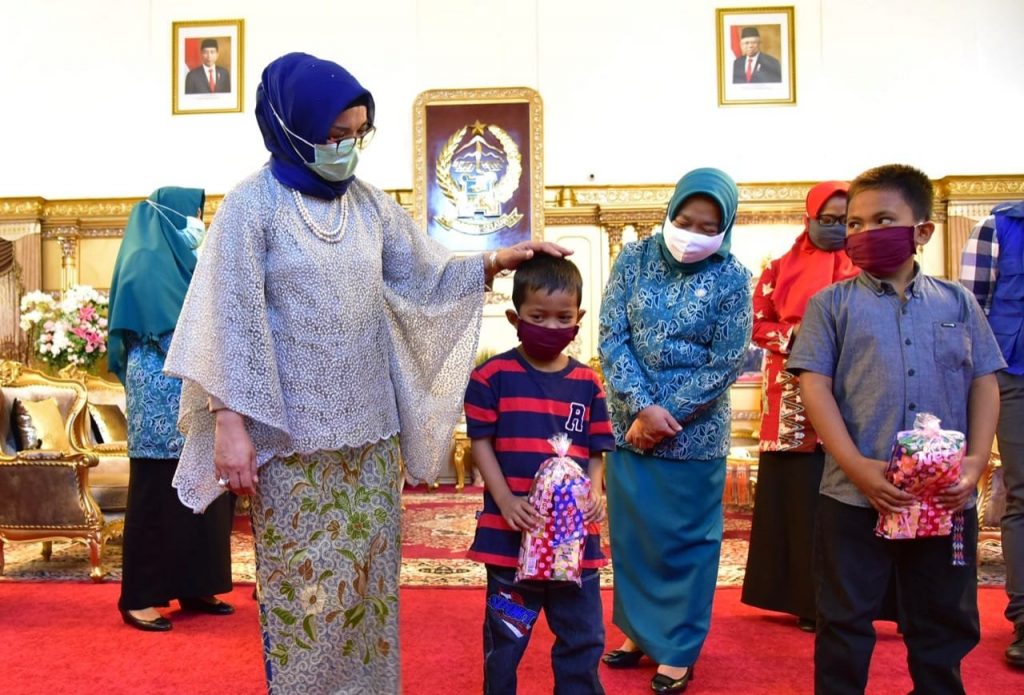 REPUBLIKNEWS.CO.ID, MAKASSAR — Ketua Tim Penggerak PKK Provinsi Sulawesi Selatan (Sulsel) Lies F Nurdin, menyerahkan bantuan masker khusus untuk anak-anak yang berasal dari beberapa kecamatan di Kota Makassar pada Senin, 1 Juni 2020.
