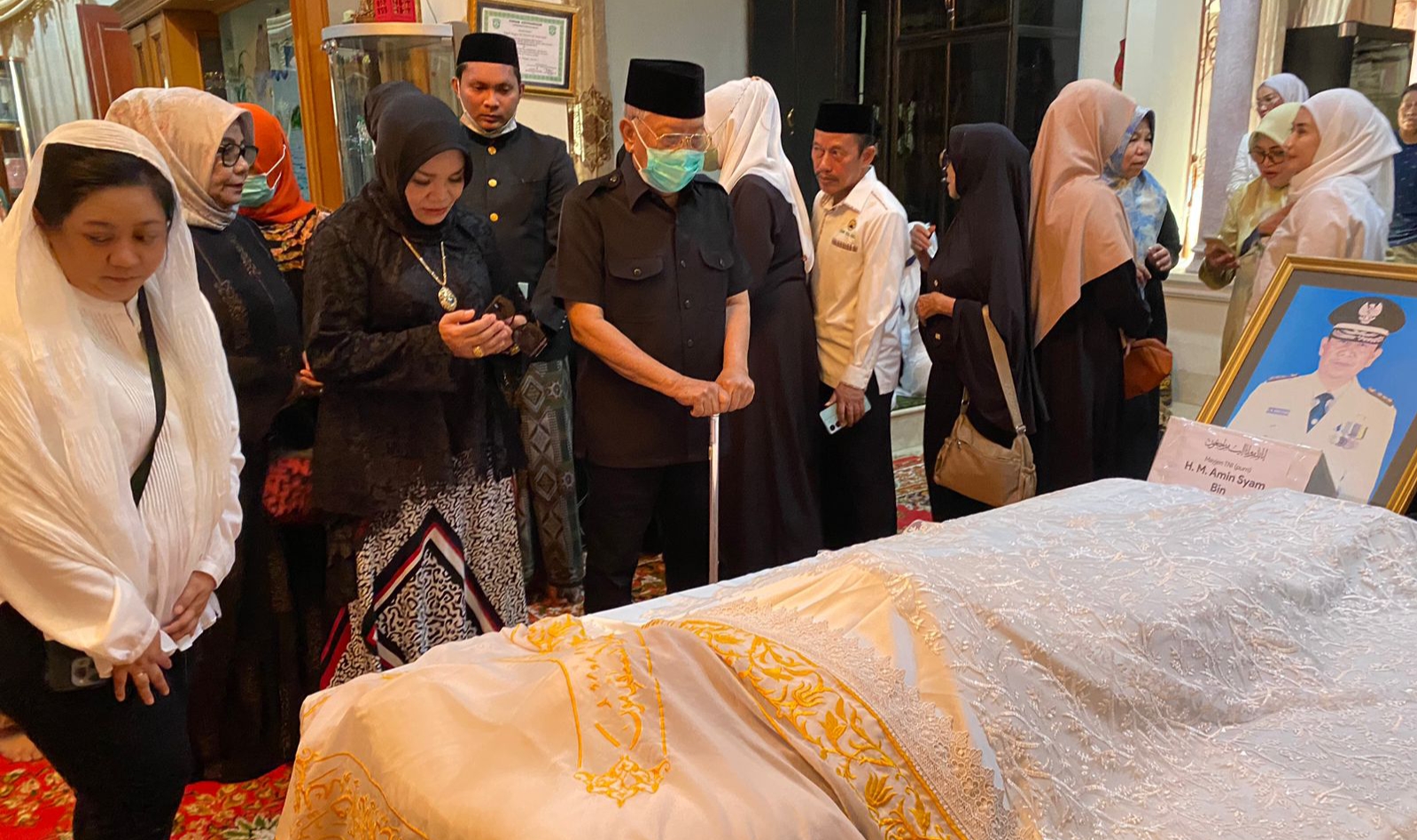 “Kami turut merasakan kehilangan yang mendalam atas berpulangnya ke rahmatullah, mantan Gubernur Sulsel bapak HM Amin Syam,” tutur Lies NA sembari memeluk istri almarhum, Apiaty Amin Syam.