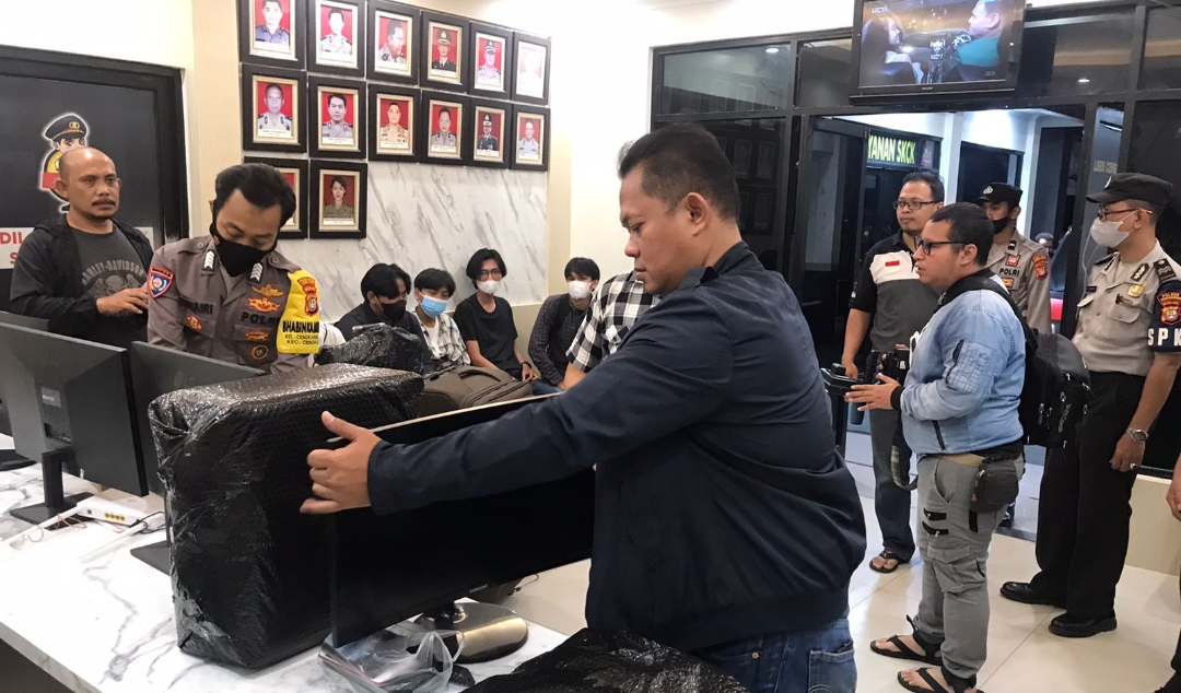Polisi menangkap tangan lima operator aplikasi judi online yang sedang mengoperasikan sebuah situs judi online.