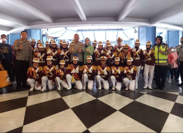 Kapolres Metro Bekasi Kota Kombes Pol Hengki, bersama Waka Polres Metro AKBP Rama Samtama Putra, Kasat Lantas AKBP Agung Pitoyo didampingi pembimbing Kanit Kamsel AKP Sri Indira berbaur dengan anak-anak Pocil Polres Metro Bekasi merayakan hasil setelah diumumkan panitia.