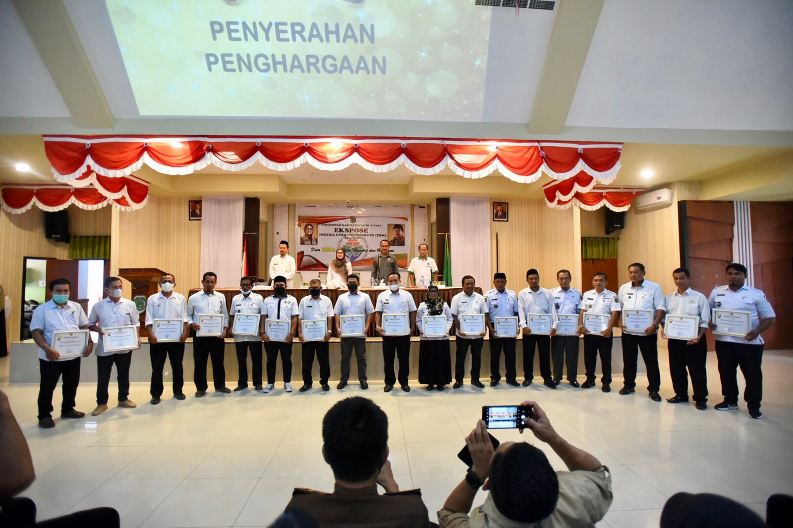 Atas pencapaian tersebut, Bupati Luwu Utara, Indah Putri Indriani memberikan penghargaan percepatan pembangunan desa kepada 12 camat dan 20 kepala desa saat kegiatan Ekspose Desa Membangun yang digelar Dinas PMD, Rabu (26/6) di Aula La Galigo.