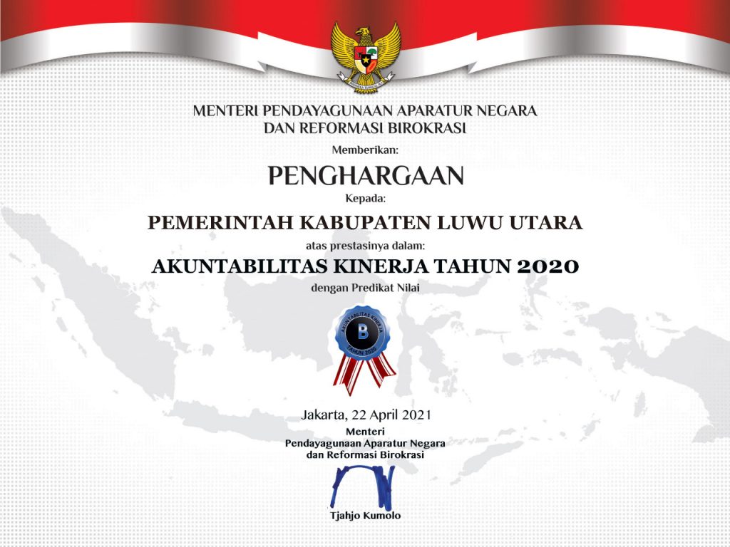 Bupati Luwu Utara, Indah Putri Indriani, Sekda Armiady dan Kepala Perangkat Daerah mengikuti kegiatan ini secara daring di Ruang Rapat Wakil Bupati. Hasil yang diterima Pemda Lutra, baik SAKIP maupun RB, tak ada yang berubah. Hasilnya sama dengan yang diperoleh sejak 2018 dan 2019.