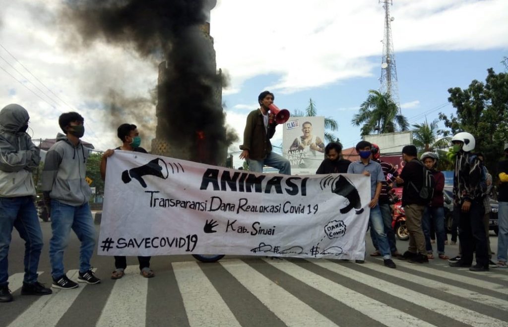 REPUBLIKNEWS.CO.ID, SINJAI – Aliansi Mahasiswa Sinjai (Animasi) melakukan unjuk rasa menuntut pemerintah daerah Kabupaten Sinjai agar transparan dalam penggunaan dana Covid-19, di depan tugu Bambu kota Sinjai, Rabu (29/07/2020).