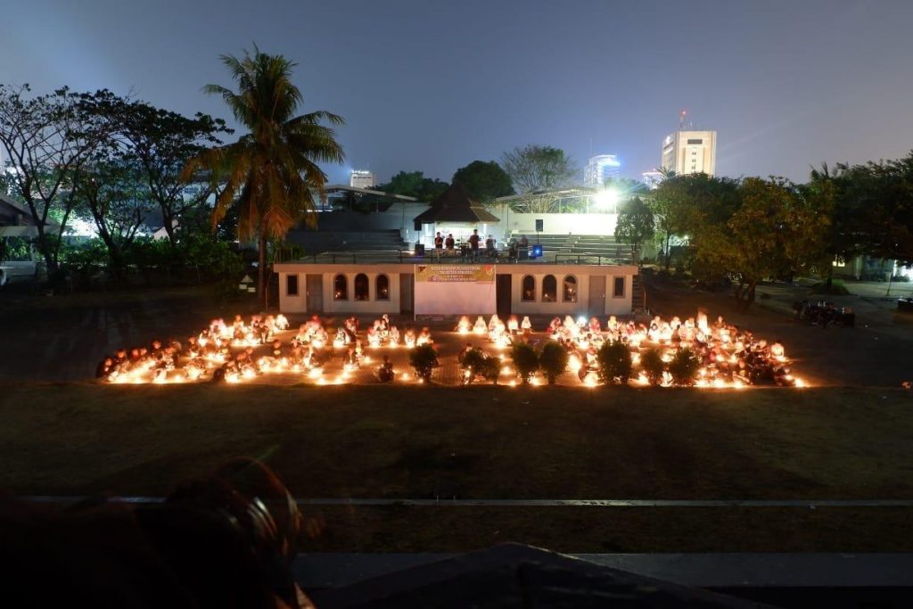 Kegiatan yang berlangsung hikmad dan dihadiri kurang lebih 350 peserta ini memiliki beberapa item diantaranya. shalat berjamaah, cerita kesaksian korban bencana, doa bersama, pentas seni serta menyalakan 1.000 lilin sebagai simbol keprihatinan.