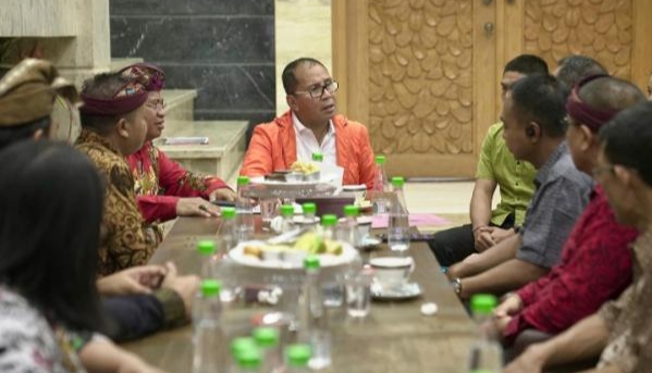 Ketua Parisada Hindu Dharma Indonesia (PHDI) Sulsel Gede Durahman bersama seluruh kontingen datang menemui Wali Kota Makassar, Moh Ramdhan Pomanto memohon doa restu.