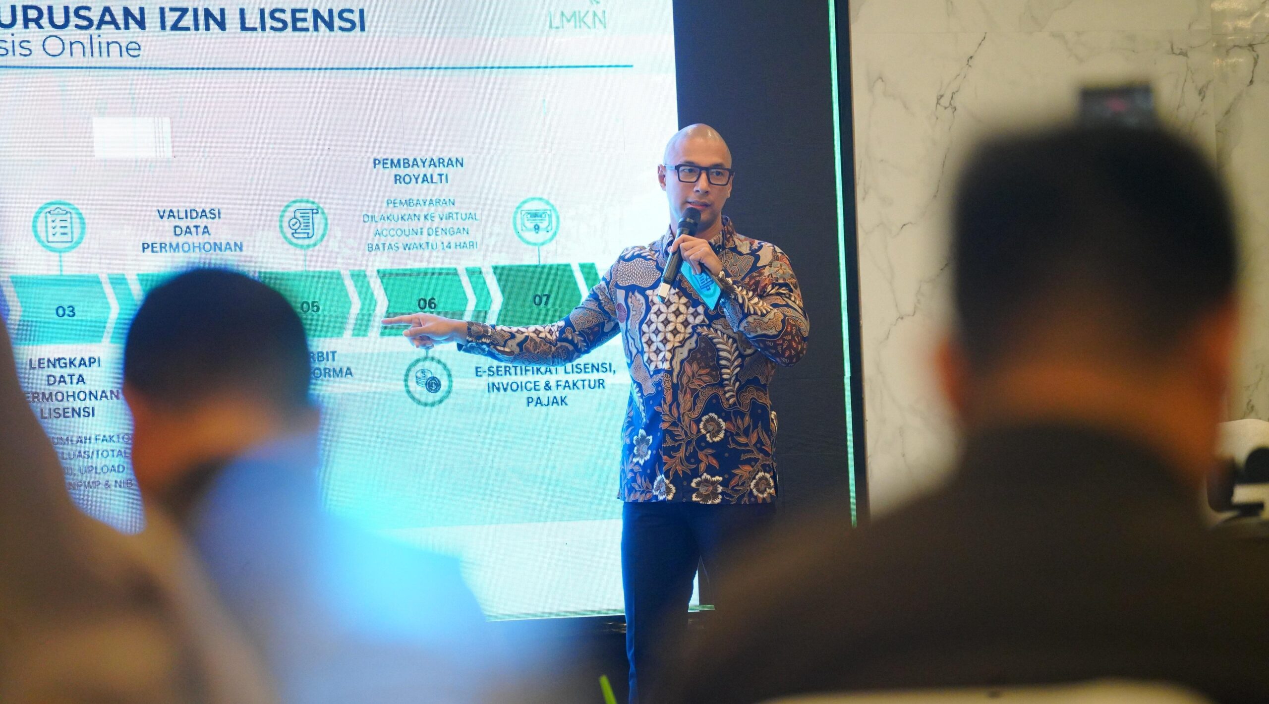 Kedatangan Ketua Lembaga Manajemen Kolektif Nasional (LMKN) ini untuk memberikan pemahaman kepada pelaku usaha tentang kewajiban pembayaran royalti lagu dan musik.