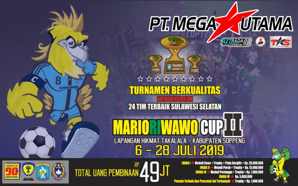 REPUBLIKNEWS.CO.ID, SOPPENG — Marioriwawo Cup II segera dilaksanakan di Lapangan Hikmat Takalala, mulai 06-28 Juli 2019 dan akan diikuti 24 Tim terbaik Club Sepak Bola Se-Sulsel.