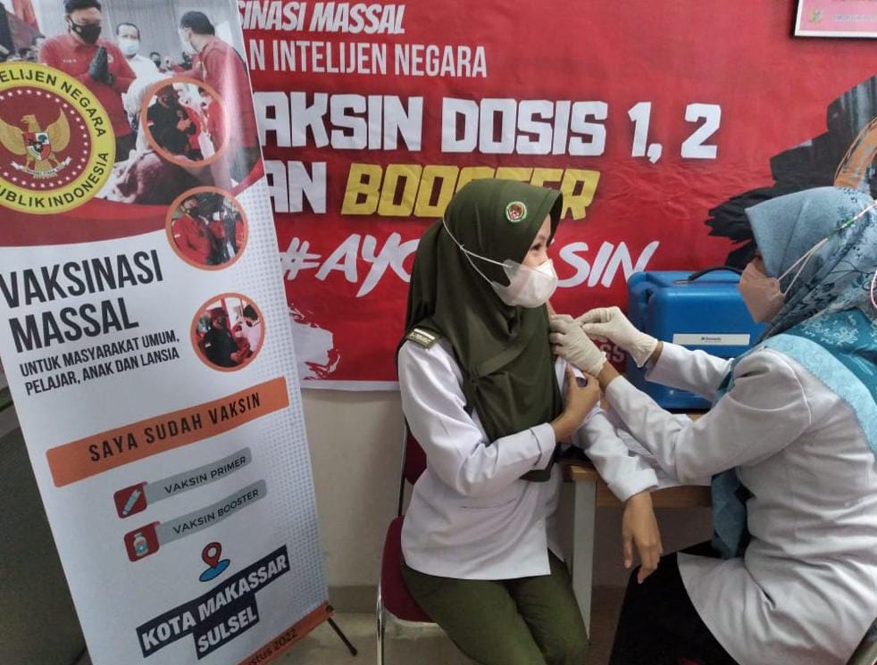 REPUBLIKNEWS.CO.ID, MAKASSAR — Masyarakat Kota Makassar terlihat antusias mengikuti vaksinasi Covid-19 yang digelar Badan Intelijen Negara Daerah (BINDA) Sulawesi Selatan. Terlihat bukan hanya masyarakat, beberapa pegawai instansi juga ikut melaksanakan vaksinasi.