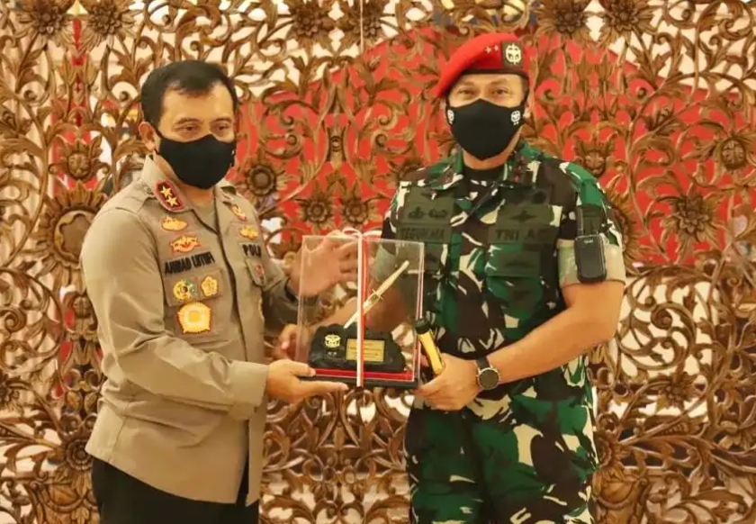 Dalam kunjungan tersebut, Danjen Kopassus disambut Kapolda Jateng Irjen Pol Ahmad Luthfi bersama Wakapolda Brigjen Pol Abioso Seno Aji di ruang kerja Kapolda, Kamis (13/01/2022).