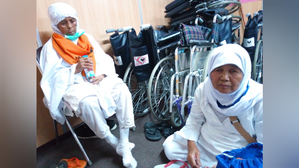 Tak lama kemudian sampailah saya di pintu Babussalam. Saya melihat dua orang nenek-nenek itu. Yang satunya duduk di lantai selonjoran sambil mengelus kaki. Seorang lainnya lagi berdiri menunggu datangnya kursi roda yang saya bawa.