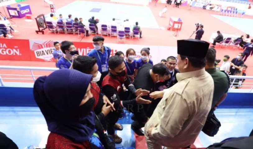 REPUBLIKNEWS.CO.ID, VIETNAM — Di sela kunjungan kerja ke Vietnam, Menteri Pertahanan RI Prabowo Subianto menyaksikan pertandingan pencak silat pada perhelatan SEA Games 2021 yang diadakan pada tahun 2022 ini di Vietnam, Sabtu (14/05/2022) kemarin.