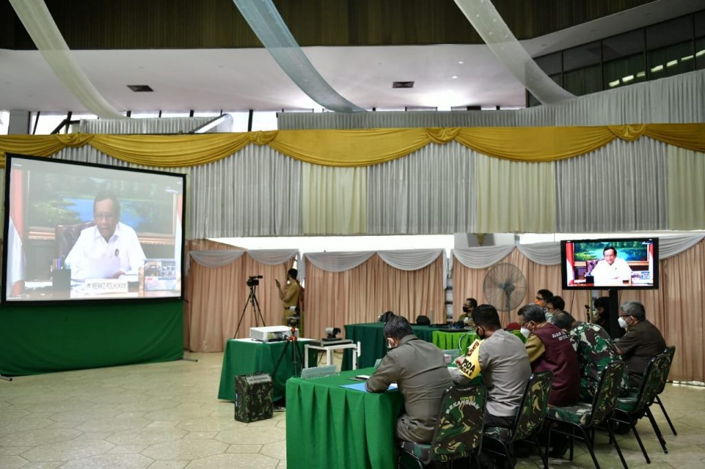 REPUBLIKNEWS.CO.ID, MAKASSAR, – Gubernur Sulsel, Pangdam Hasanuddin, Kapolda, Kajati dan Kabinda Sulsel, melakukan rapat via video conference (Vicon) dengan Menteri Koordinator Bidang Politik, Hukum, dan Keamanan (Menko Polhukam). Dalam vicon ini membahas bagaimana pengamanan dan penegakan protokol kesehatan jelang Hari Raya Idul Fitri 1441 H.