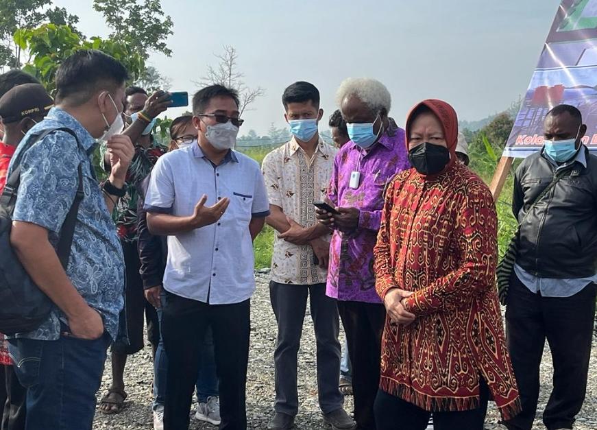 REPUBLIKNEWS.CO.ID, JAYAPURA – Hari kedua lawatan kerja ke Provinsi Papua, Menteri Sosial Tri Rismaharini meninjau progres pembangunan 76 hunian warga terdampak banjir melalui Koperasi Alom di Doyo Baru Sentani Barat Kabupaten Jayapura, Rabu (23/03/2022).