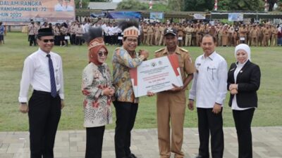 “Penyerahan bantuan ini sebagai kado di Hari Bakti Transmigrasi ke-72. Selain itu juga dilakukan penyerahan bidang tanah hak pengelolaan transmigrasi di Kabupaten Merauke dari Kementerian Desa PDTT kepada Pemkab Merauke,” pungkasnya.
