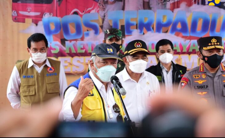 REPUBLIKNEWS.CO.ID, CIKAMPEK — Menteri Pekerjaan Umum dan Perumahan Rakyat (PUPR) Basuki Hadimuljono bersama Kepala Kepolisian Republik Indonesia (Kapolri) Jenderal Listyo Sigit Prabowo, Menteri Perhubungan Budi Karya Sumadi, dan Menko PMK Muhadjir Effendy meninjau kesiapan tempat peristirahatan pemudik di Rest Area KM 57 Tol Jakarta-Cikampek, Selasa (26/04/2022).