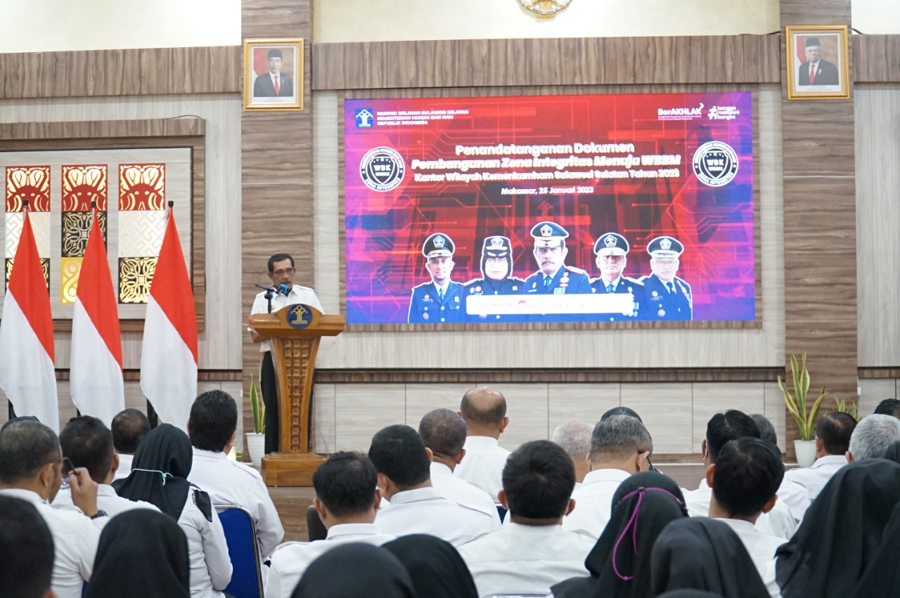 Hal ini diungkapkan Kakanwil Kemenkumham Sulsel Liberti Sitinjak saat melaksanakan penandatanganan dokumen Pembangunan Zona Integritas (ZI) Menuju Wilayah Birokrasi Bersih dan Melayani (WBBM) di Aula Kanwil Kemenkumham Sulsel.