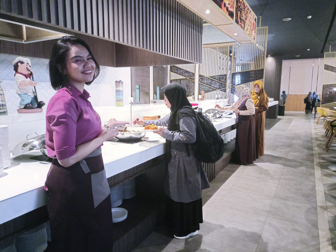 Konsep makan prasmanan yang dihadirkan hotel berbintang di Jalan AP Pettarani ini bukan hanya menampilkan sajian makanan lezat dan spesial, namun juga di tampilkan live cooking untuk memberikan kesan dan nuansa yang lebih menarik lagi bagi tamu.